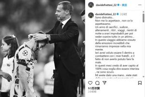 “在过去的几个月里,我感觉自己真正理解了作为一名国际米兰球员的意义,对此我深信不疑。即使我在球场上状态不佳,即使我不是那个总是充满活力、面带笑容的自己,你们依然支持我,在我生命中最艰难的时刻与我并肩战斗。这场失利让我很难过,可能在接下来的几天里,我会独自看着天花板,沉浸在失落中。我知道,我们让很多人失望了,首先是我们自己。国际米兰加油,永远加油!为了那些在场的人,为了那些已经离开的人,为了那些永不放弃、跌倒后又重新站起来并夺回一切的人,我真的爱你们!”